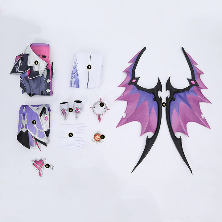 - Package Includes: Underwear, Coat, Pants, Wristband, Gloves, Chest accessory, Vision, Bracelet, Wing, Horn, Tail