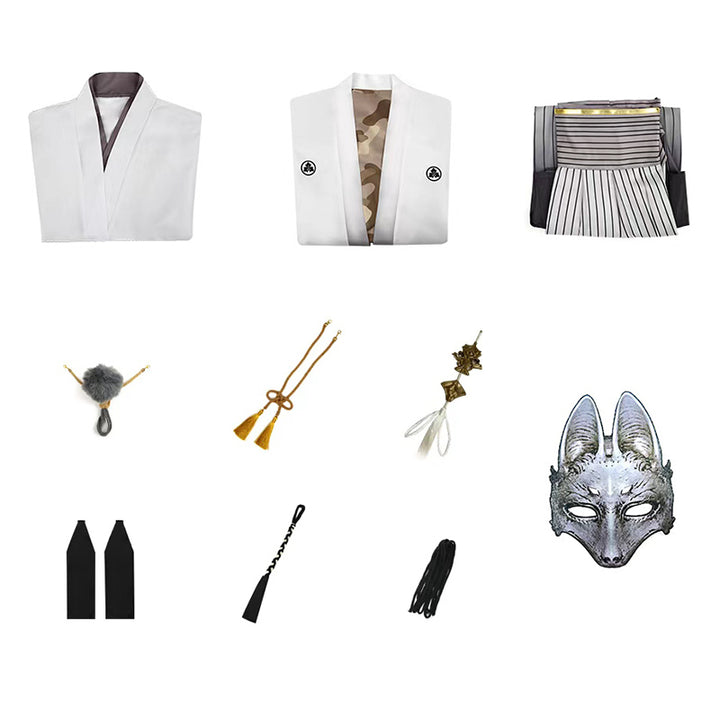 - Package Includes: Underwear, Coat, Skirt, Chest accessory, Accessory, Earrings, Mask, Gloves, Belt
