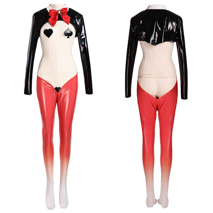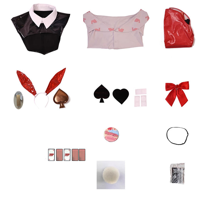 - Package Includes: Top, Coat, Pants, Headwear, Nipple Cover (3 pairs), Bowtie, Cards, Badge, Leg wear, Tail, Invisible strap