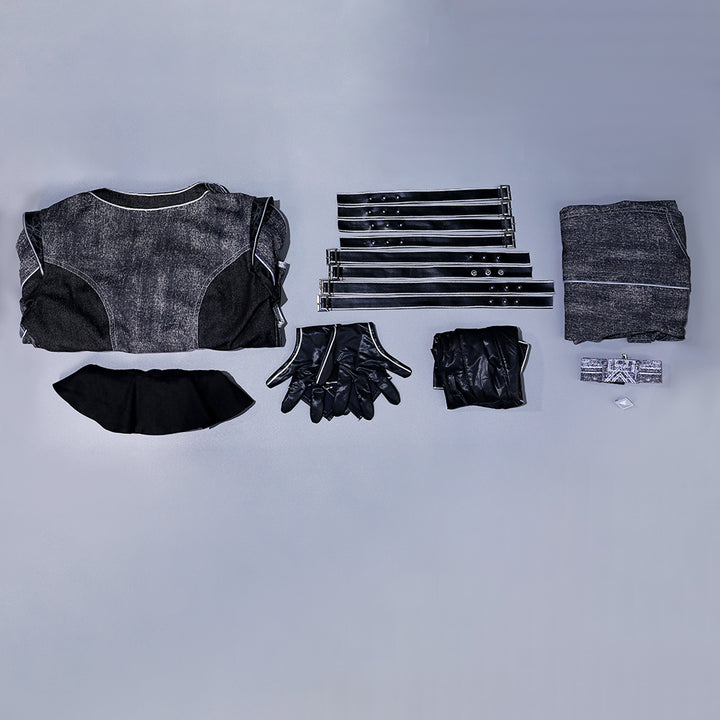 - Package Includes: Top, Leg strap, Pants, Scarf, Gloves, Leg covers, Belt, Accessory