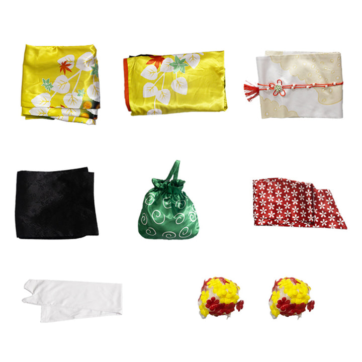 • Package Includes: Kimono, Waist cummerbund*2, Skirt, Socks, Bag, Accessory, Headwear