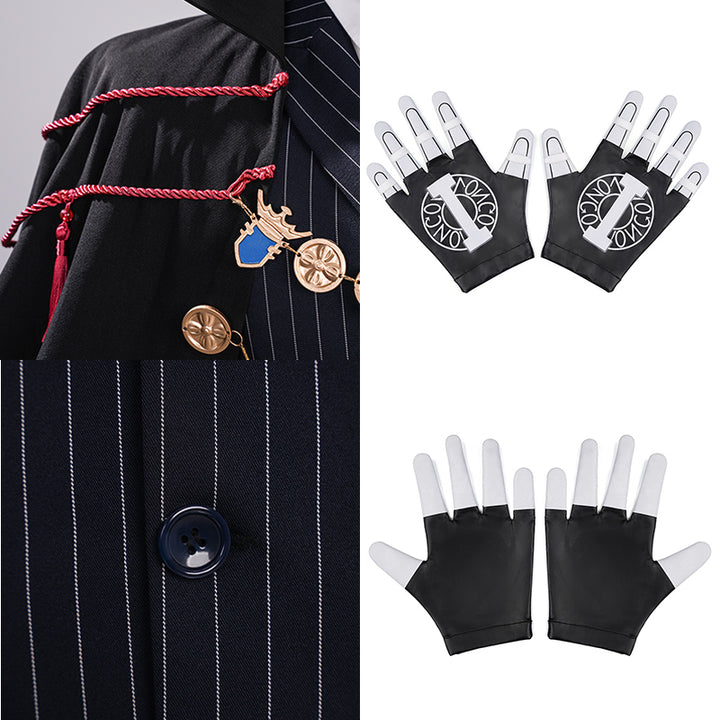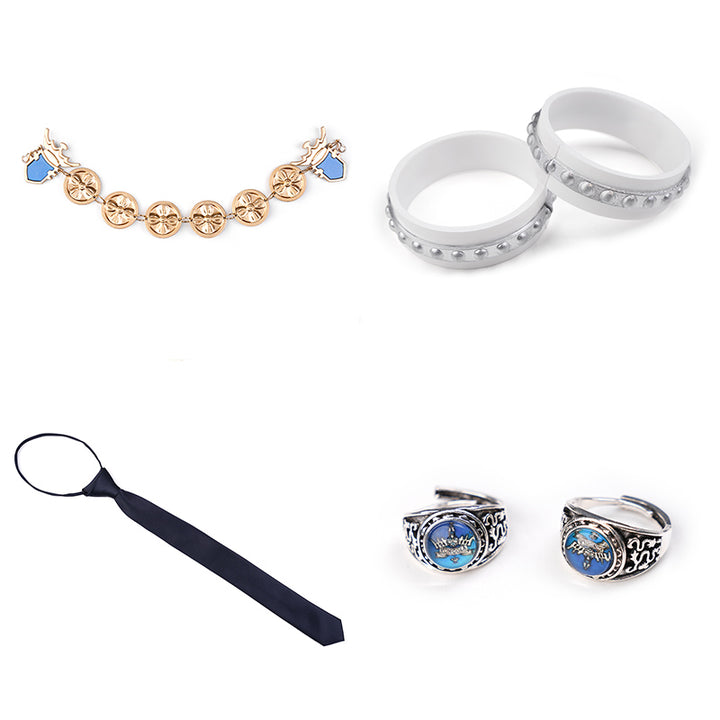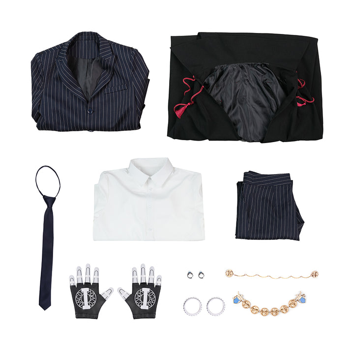 - Package Includes: Shirt, Tie, Coat, Pants, Cloak, Cloak accessory, Bracelet, Gloves, Ring