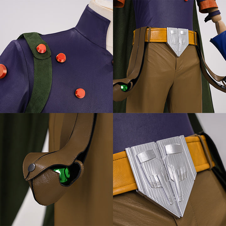 - Package Includes: Top, Armband, Hand guards, Cloak, Pant, Pants strap, Waist prop, Hat, Hat Glasses, Accessory